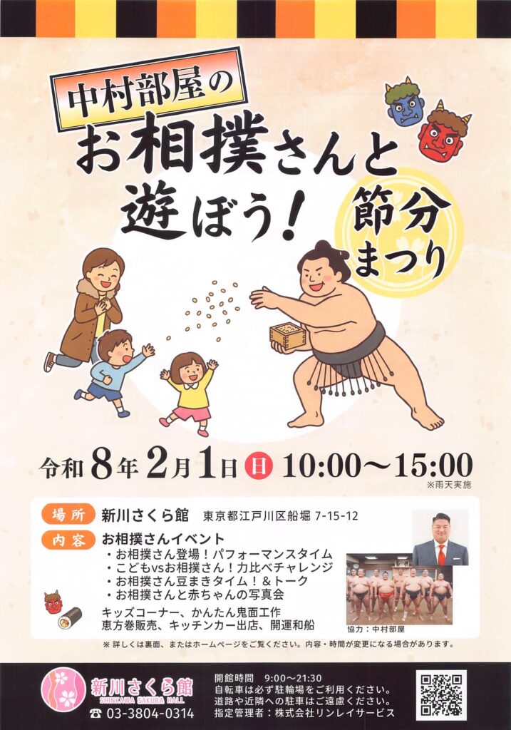 2026年1月11日 / 最終更新日時 : 2025年12月23日 ukita14ken 近隣の情報 お相撲さんと遊ぼう(2月1日) 新川さくら館でイベントが行われます。お子さん連れでいかがですか。 コメントを残す コメントをキャンセルメールアドレスが公開されることはありません。 ※ が付いている欄は必須項目ですコメント ※ 名前 ※ メール ※ サイト 次回のコメントで使用するためブラウザーに自分の名前、メールアドレス、サイトを保存する。